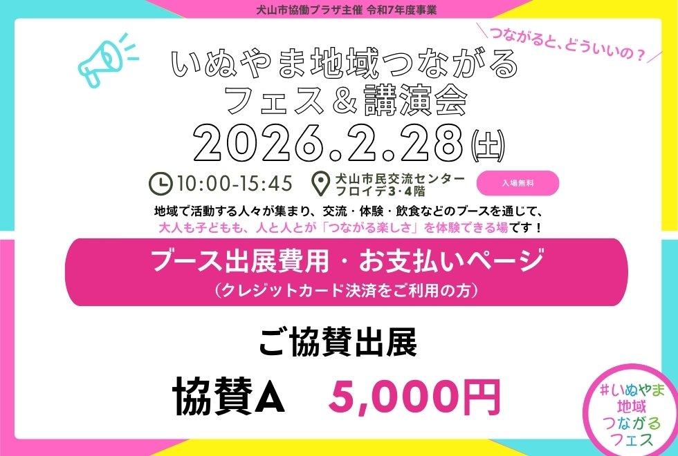いぬやま地域つながるフェス&講演会 出展ブース参加費⑤ 事業者協賛ブースA (1ブース 5,000円)