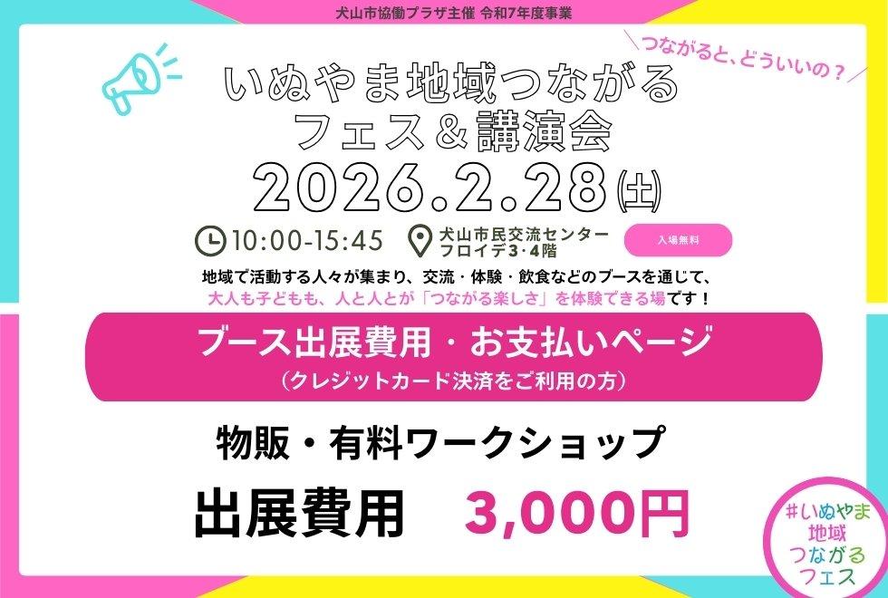 いぬやま地域つながるフェス&講演会 出展ブース参加費① 有料ワークショップ・フード・物販等 (1ブース 3,000円)